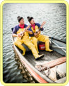 Auftritte watend, schwimmend oder mit Boot. In Meeren,